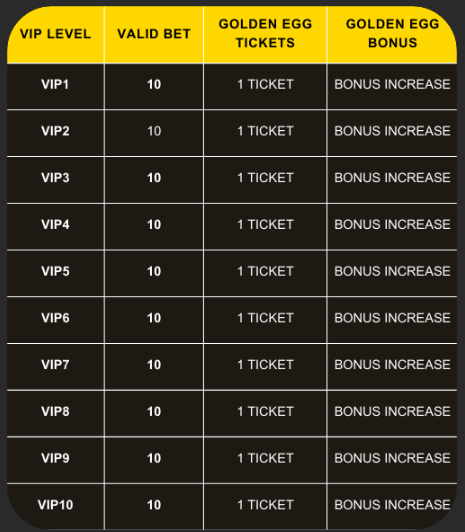 Join the Daily VIP Golden Egg Bonus and start your lucky journey today!Wishing you lots of luck and daily surprises!*